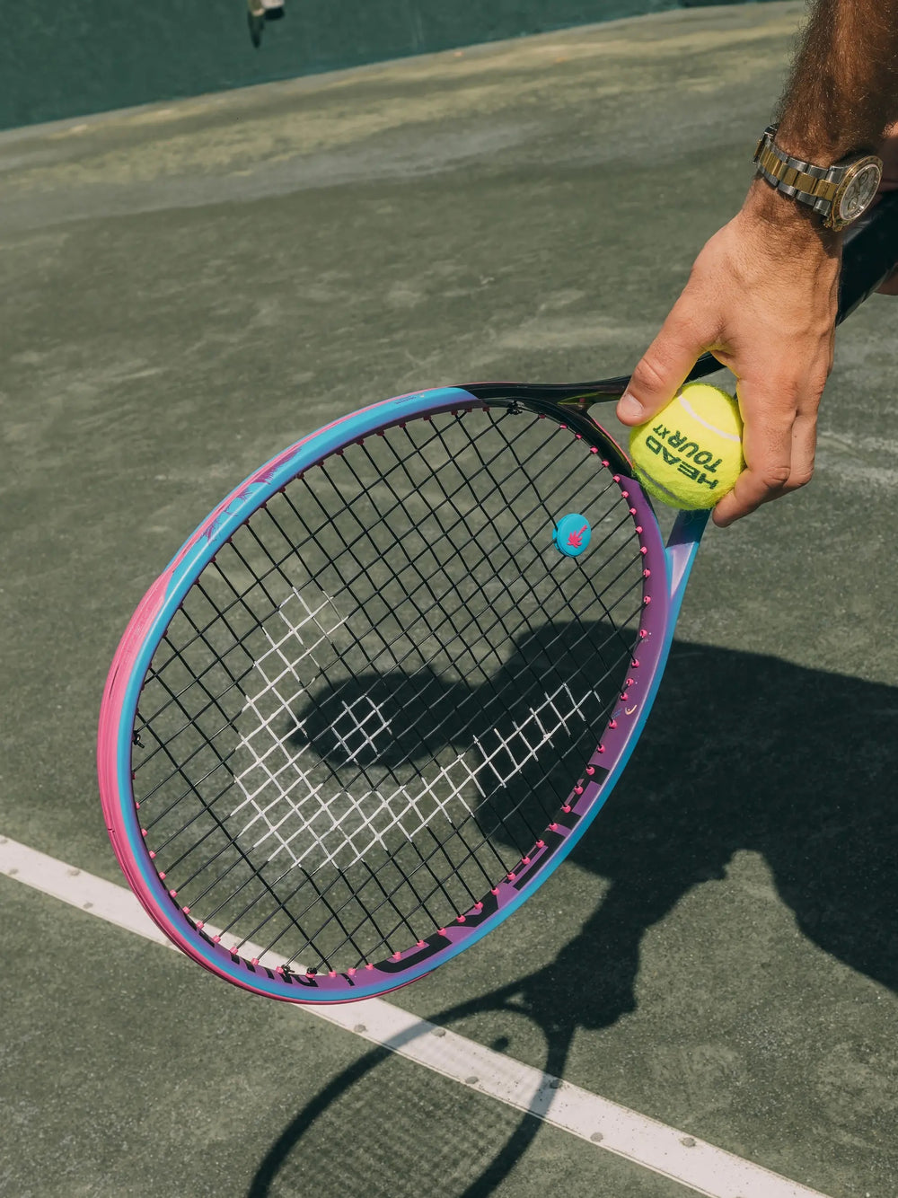 Dance to your own rhythm with the limited edition of Radical MP Palm Tree Crew tennis racket from a collaboration between Head and DJ Kygos Palm Tree Crew. Recommended by T. Fritz